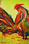 2007Ik heb de opdracht gekregen om kippen te schilderen met wel enigszins de vrije hand wat kleur en compositie betreft. Een mooi en krachtig resultaat!!!